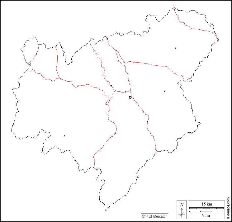 d-maps > Europe > United Kingdom > Scottish Borders > outline, main cities, roads, white