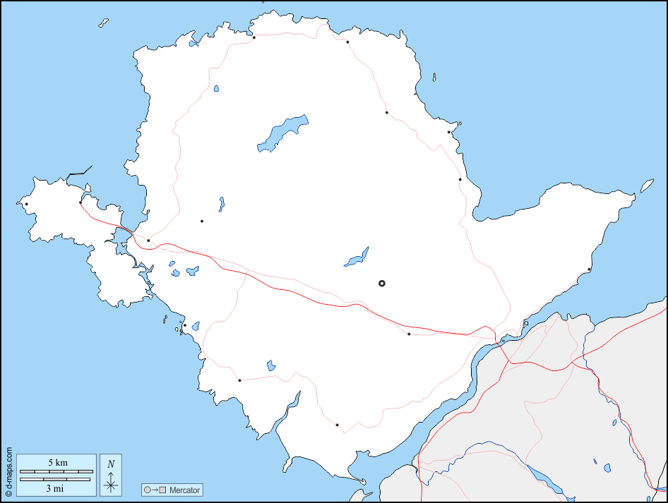 d-maps > Europe > United Kingdom > Anglesey > boundaries, hydrography, main cities, roads
