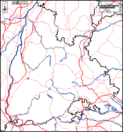 d-maps > Europe > Germany > Freiburg administrative district > boundaries, hydrography, main cities, roads, white