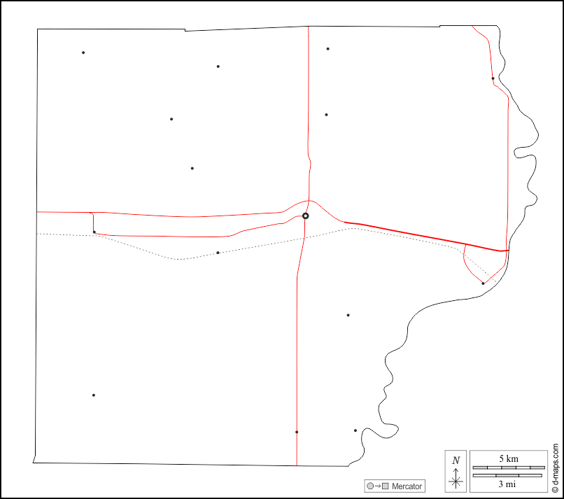 d-maps > United States of America (USA) > Illinois > Lawrence County > outline, main cities, roads, white