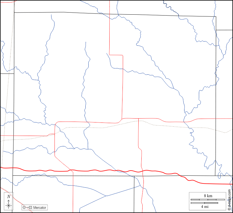 d-maps > United States of America (USA) > Illinois > Wayne County > boundaries, hydrography, roads, white