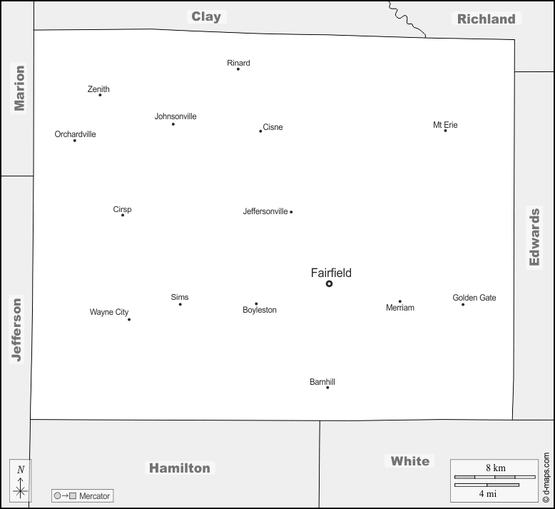 d-maps > United States of America (USA) > Illinois > Wayne County > boundaries, main cities, names