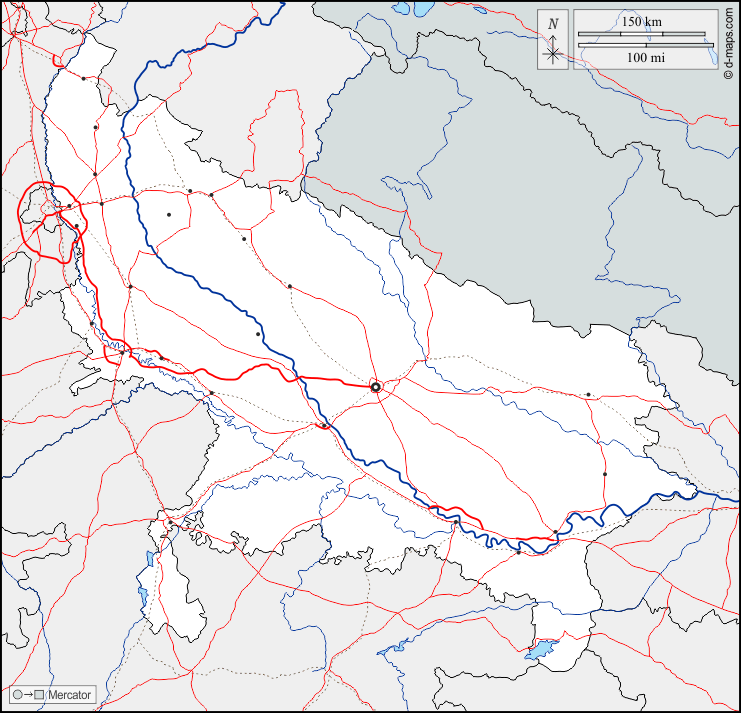 d-maps > Asia > India > Uttar Pradesh > boundaries, hydrography, main cities, roads