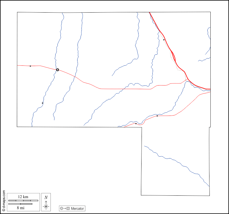 d-maps > United States of America (USA) > Colorado > Elbert County > outline, hydrography, main cities, roads, white