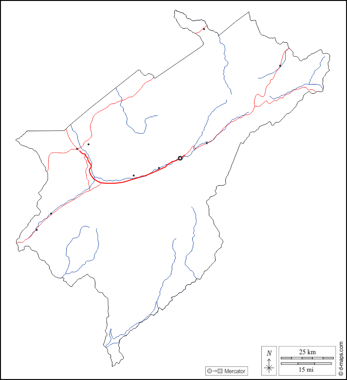 d-maps > Americas > Venezuela > Mérida > outline, hydrography, main cities, roads, white