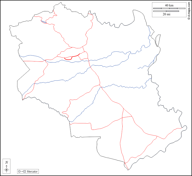 d-maps > Americas > Venezuela > Monagas > outline, hydrography, roads, white