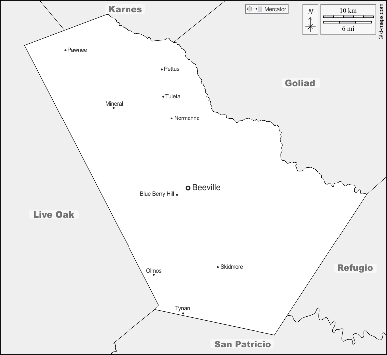 d-maps > United States of America (USA) > Texas > Bee County > boundaries, main cities, names