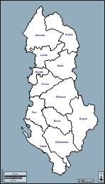 d-maps > Europe > Albania > Albania > outline, prefectures, names, color, white