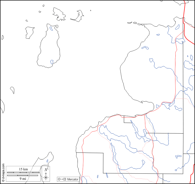 d-maps > United States of America (USA) > Michigan > Charlevoix County > boundaries, hydrography, roads, white
