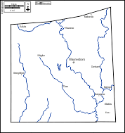 d-maps > United States of America (USA) > Mississippi > Wayne County > boundaries, hydrography, main cities, roads, names