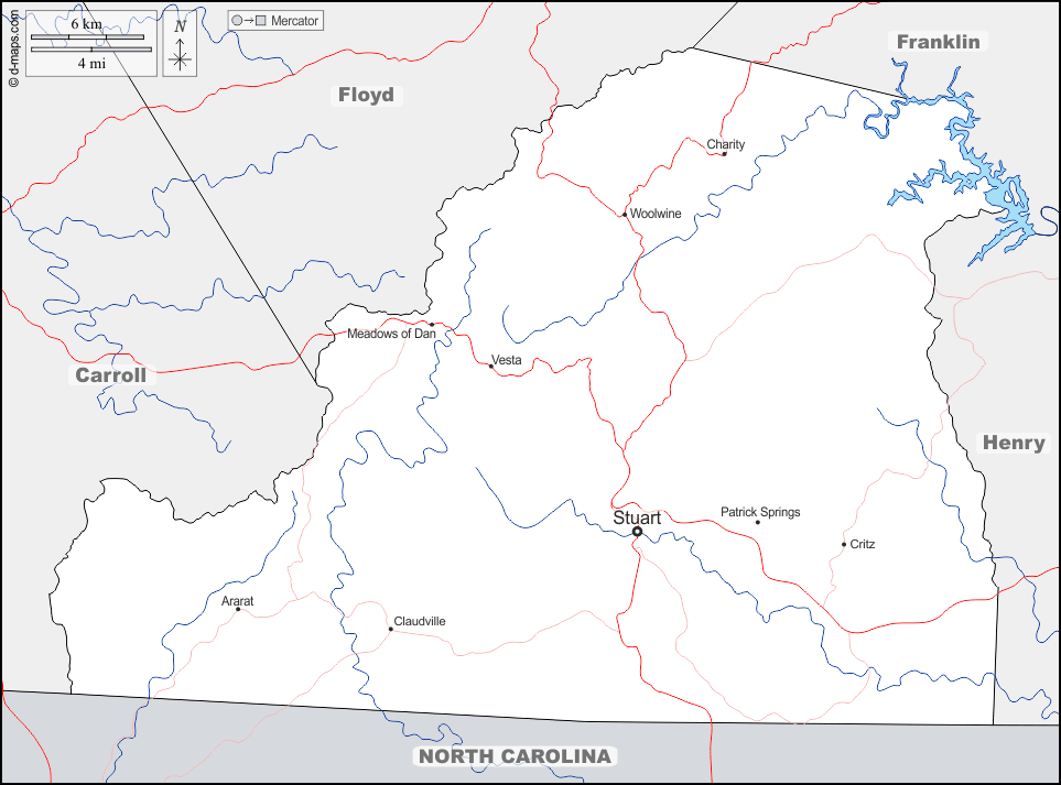 d-maps > United States of America (USA) > Virginia > Patrick County > boundaries, hydrography, main cities, roads, names