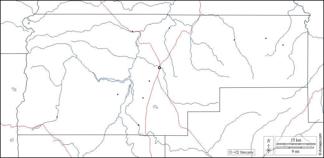 d-maps > United States of America (USA) > Oregon > Jefferson County > boundaries, hydrography, main cities, roads, white