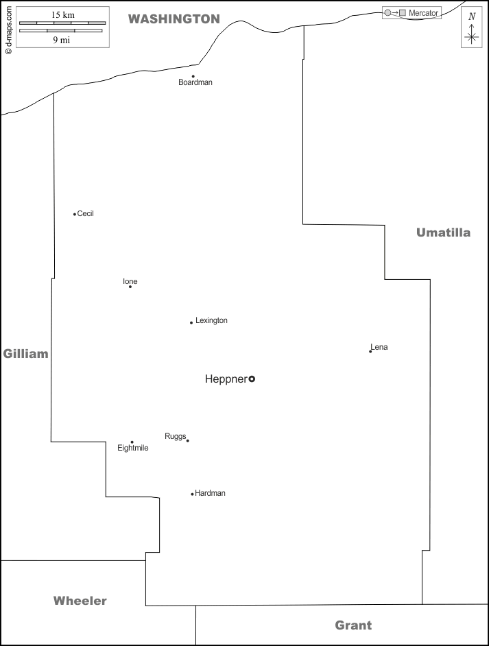 d-maps > United States of America (USA) > Oregon > Morrow County > boundaries, main cities, names, white