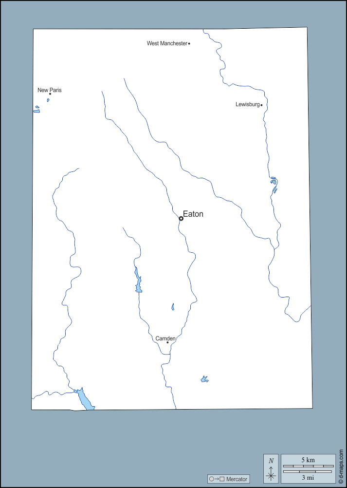 d-maps > United States of America (USA) > Ohio > Preble County > outline, hydrography, main cities, names