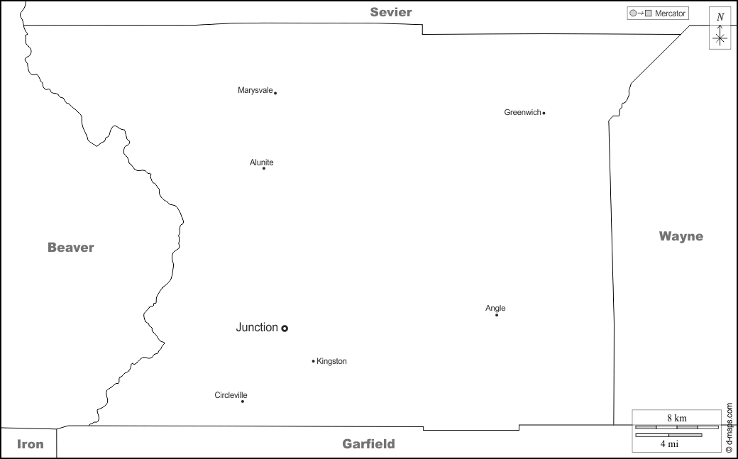 d-maps > United States of America (USA) > Utah > Piute County > boundaries, main cities, names, white