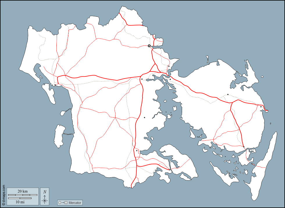 d-maps > Europe > Denmark > Region of Southern Denmark > outline, main cities, roads