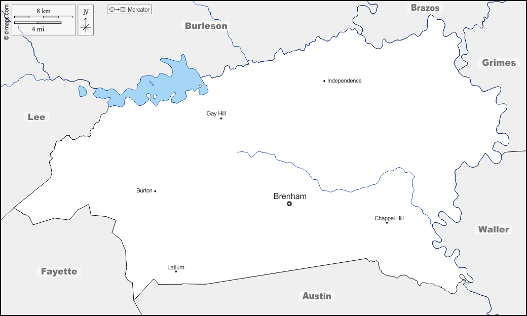 d-maps > United States of America (USA) > Texas > Washington County > boundaries, hydrography, main cities, names