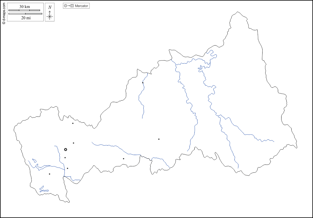 d-maps > Americas > Peru > Pasco > outline, hydrography, main cities, white