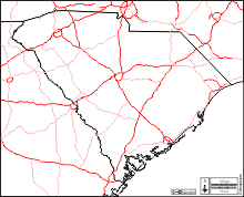 d-maps > United States of America (USA) > South Carolina > South Carolina > outline, main cities, roads, names, white