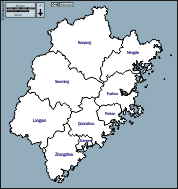 d-maps > Asia > China > Fujian > outline, prefectures, names, white