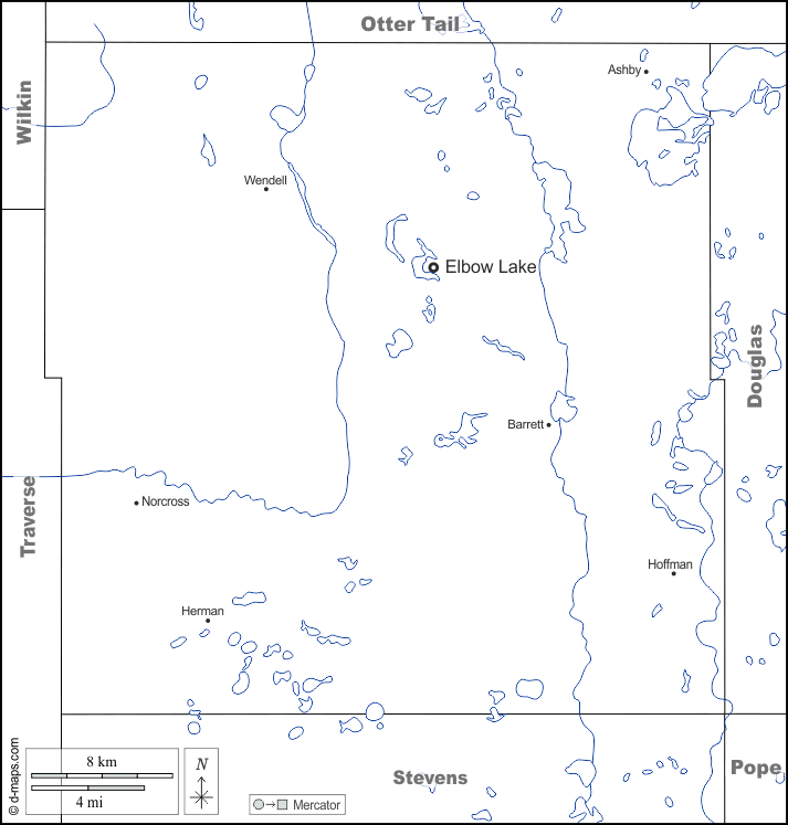 d-maps > United States of America (USA) > Minnesota > Grant County > boundaries, hydrography, main cities, names, white