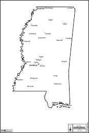 d-maps > United States of America (USA) > Mississippi > Mississippi > outline, counties, names, white