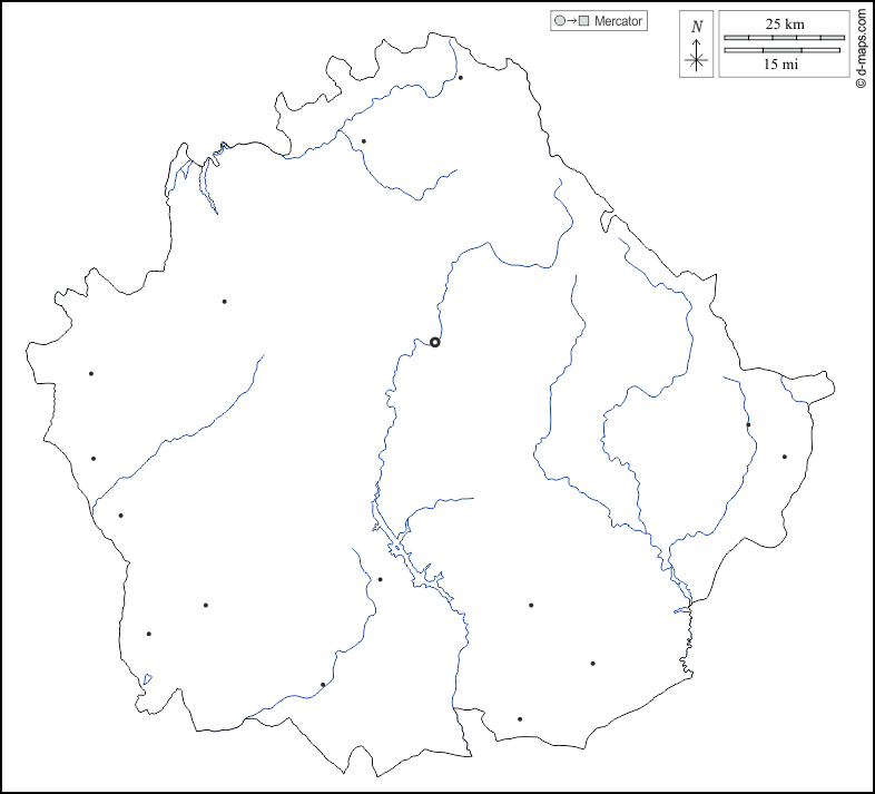 Europe > Spain > Cuenca > outline, hydrography, main cities, white