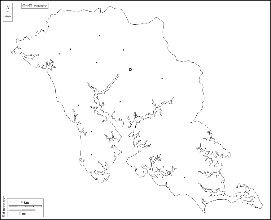 d-maps > United States of America (USA) > Virginia > Lancaster County > outline, main cities, white