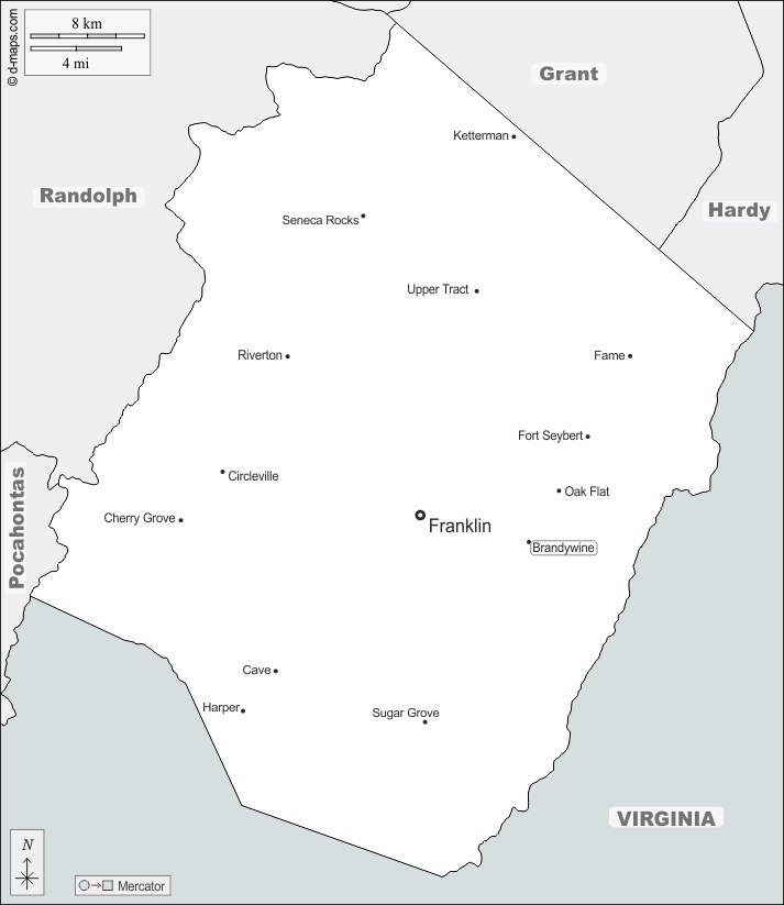 d-maps > United States of America (USA) > West Virginia > Pendleton County > boundaries, main cities, names