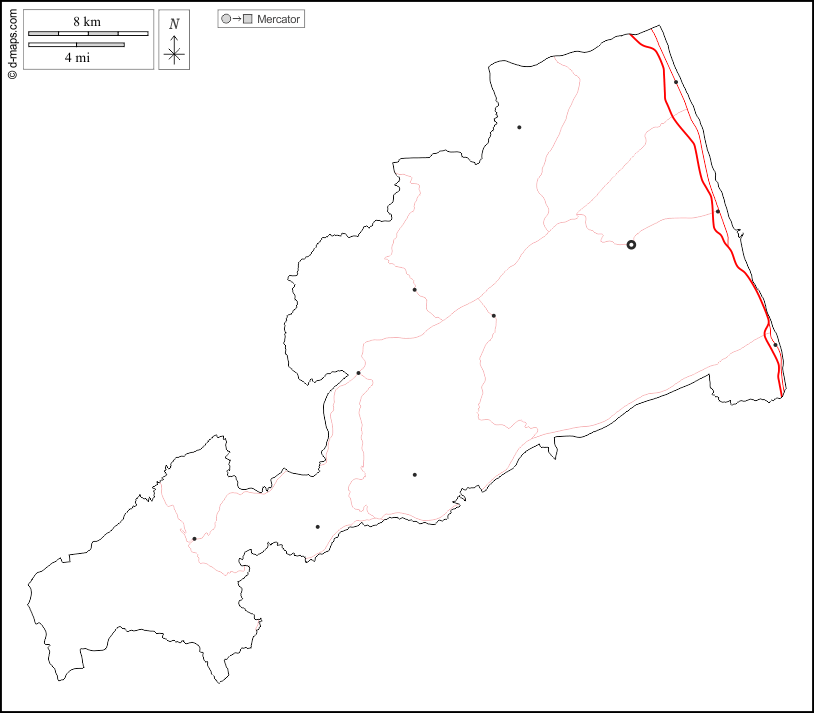 d-maps > Europe > Italy > Fermo > outline, main cities, roads, white