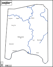d-maps > United States of America (USA) > Ohio > Adams County > boundaries, hydrography, main cities, roads, names, white