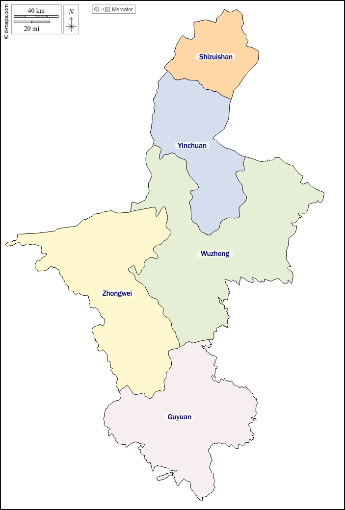 Asia > China > Ningxia > outline, prefectures, names, color, white