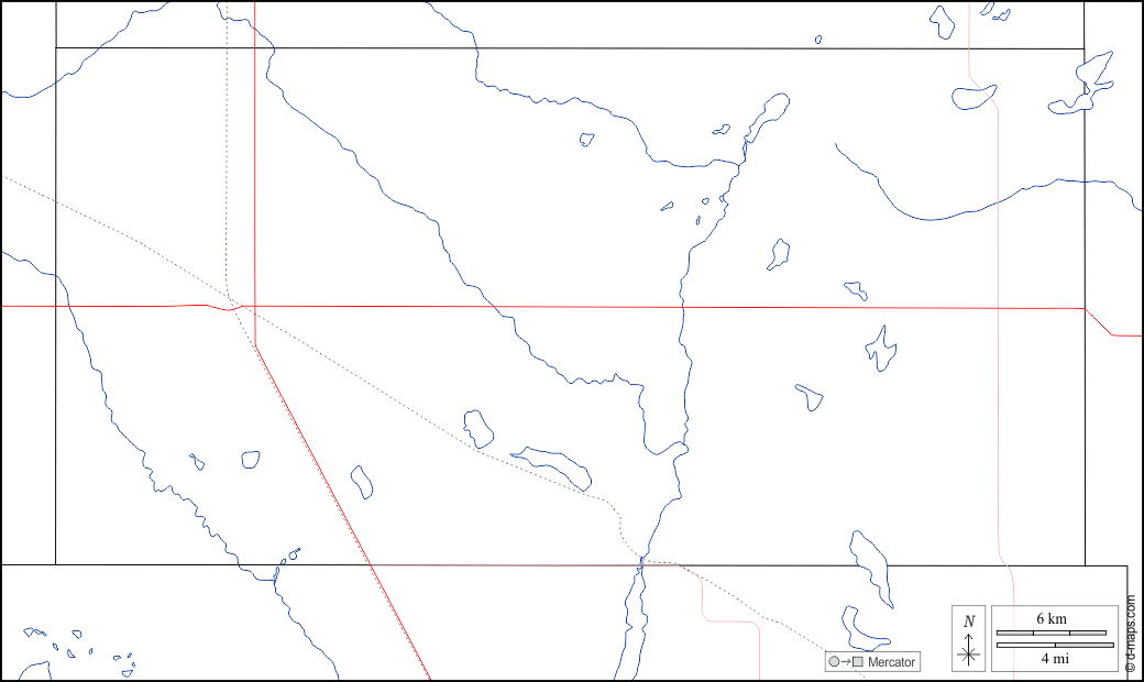 d-maps > United States of America (USA) > North Dakota > Foster County > boundaries, hydrography, roads, white