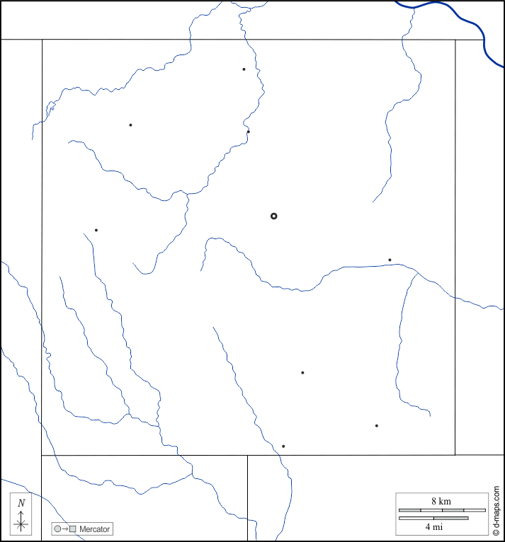 d-maps > United States of America (USA) > Kansas > Brown County > boundaries, hydrography, main cities, white