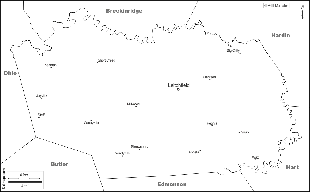 d-maps > United States of America (USA) > Kentucky > Grayson County > boundaries, main cities, names, white