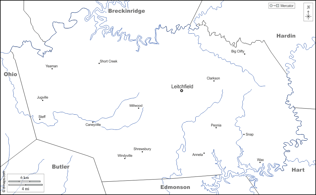 d-maps > United States of America (USA) > Kentucky > Grayson County > boundaries, hydrography, main cities, names, white