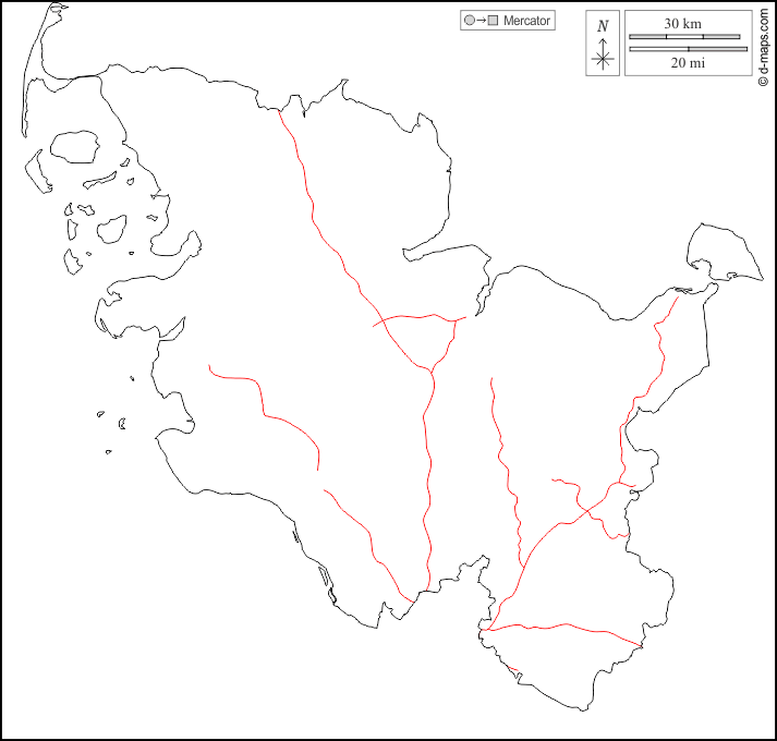 d-maps > Europe > Germany > State of Schleswig-Holstein > outline, roads, white