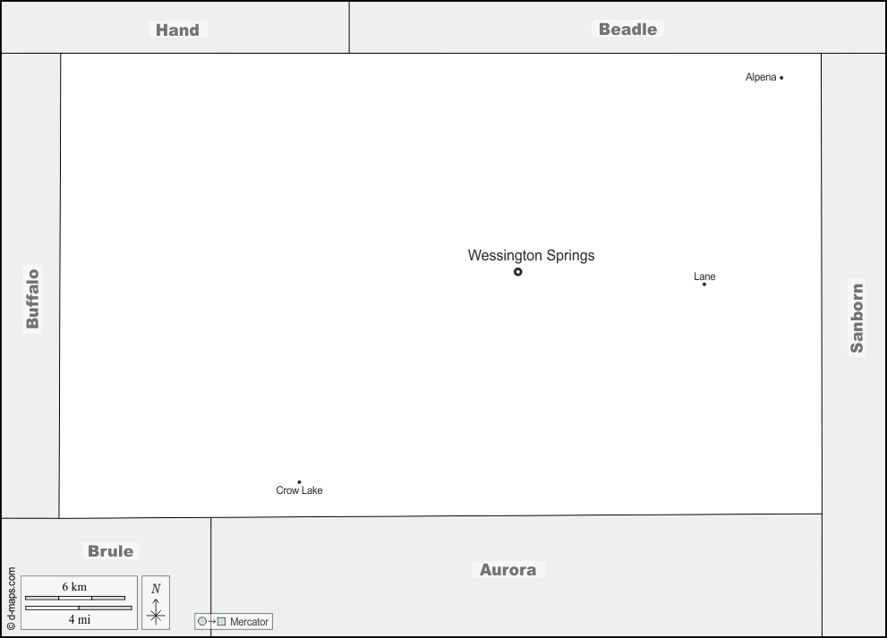 d-maps > United States of America (USA) > South Dakota > Jerauld County > boundaries, main cities, names