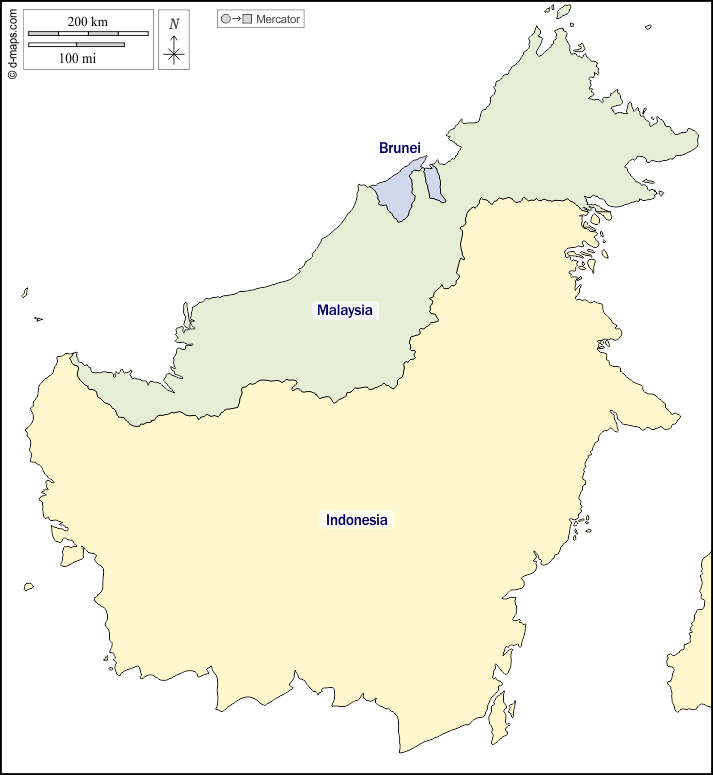 d-maps > Asia > Borneo > regions, names, color, white