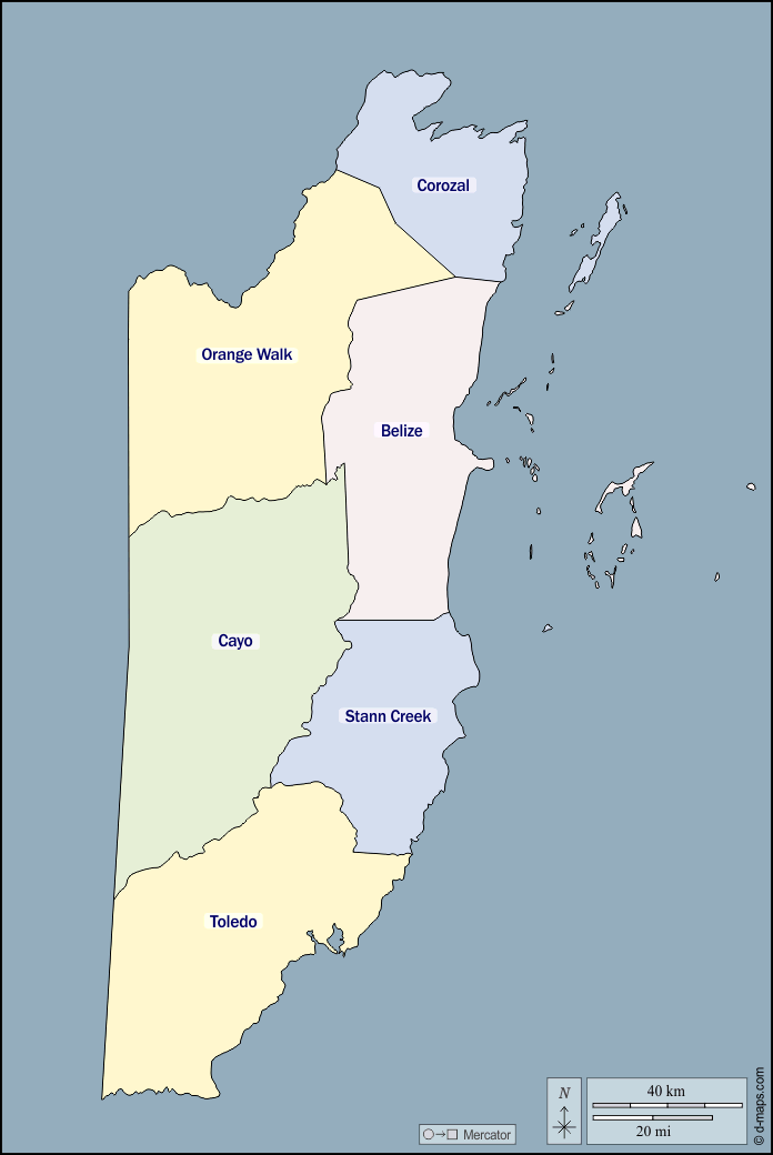d-maps > Americas > Belize > outline, districts, names, color