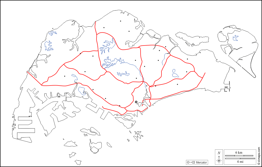 d-maps > Asia > Singapore > outline, hydrography, neighborhoods, roads, white