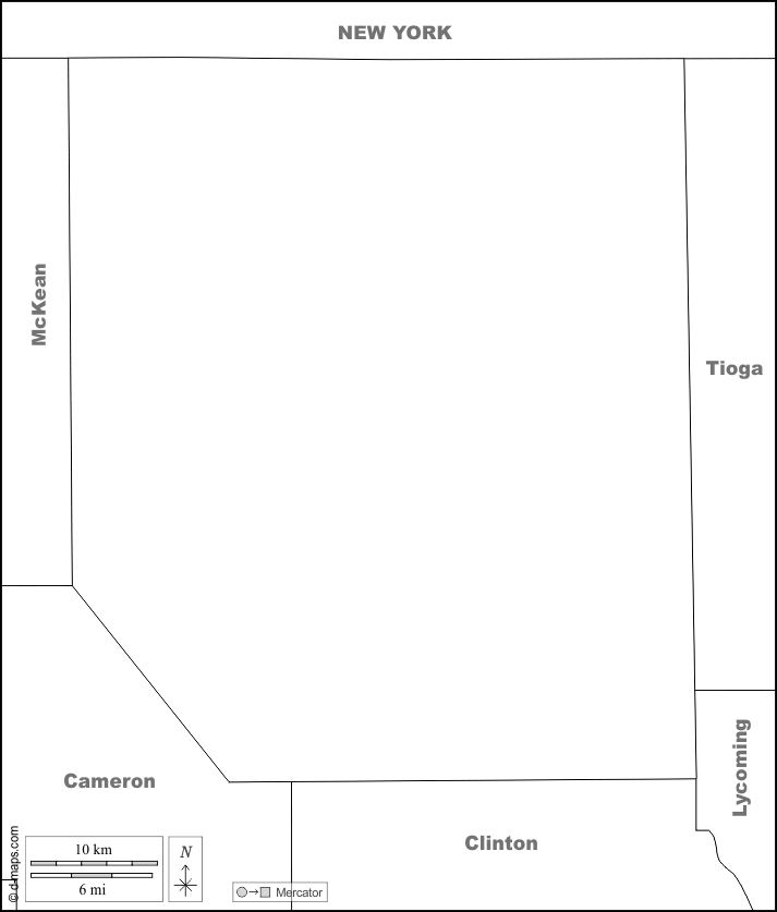 d-maps > United States of America (USA) > Pennsylvania > Potter County > boundaries, names, white