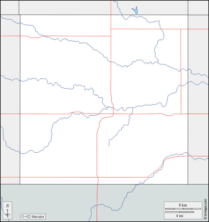 d-maps > United States of America (USA) > Nebraska > Thayer County > boundaries, hydrography, roads
