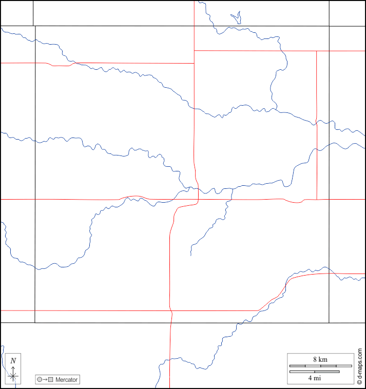 d-maps > United States of America (USA) > Nebraska > Thayer County > boundaries, hydrography, roads, white