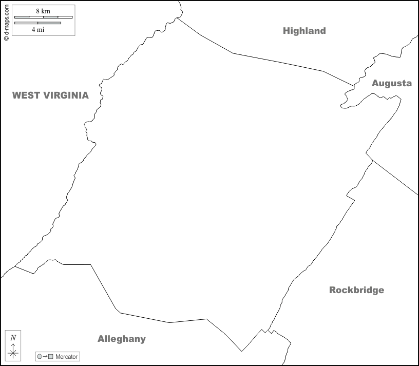 d-maps > United States of America (USA) > Virginia > Bath County > boundaries, names, white