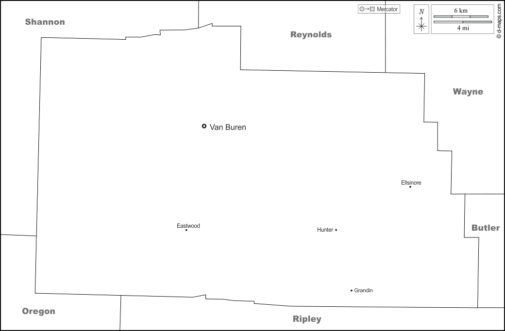 d-maps > United States of America (USA) > Missouri > Carter County > boundaries, main cities, names, white