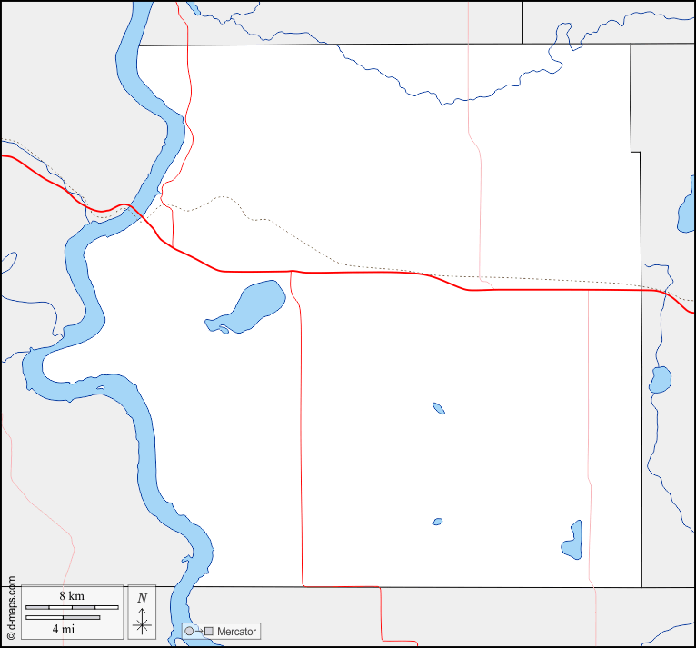 d-maps > United States of America (USA) > South Dakota > Brule County > boundaries, hydrography, roads