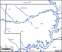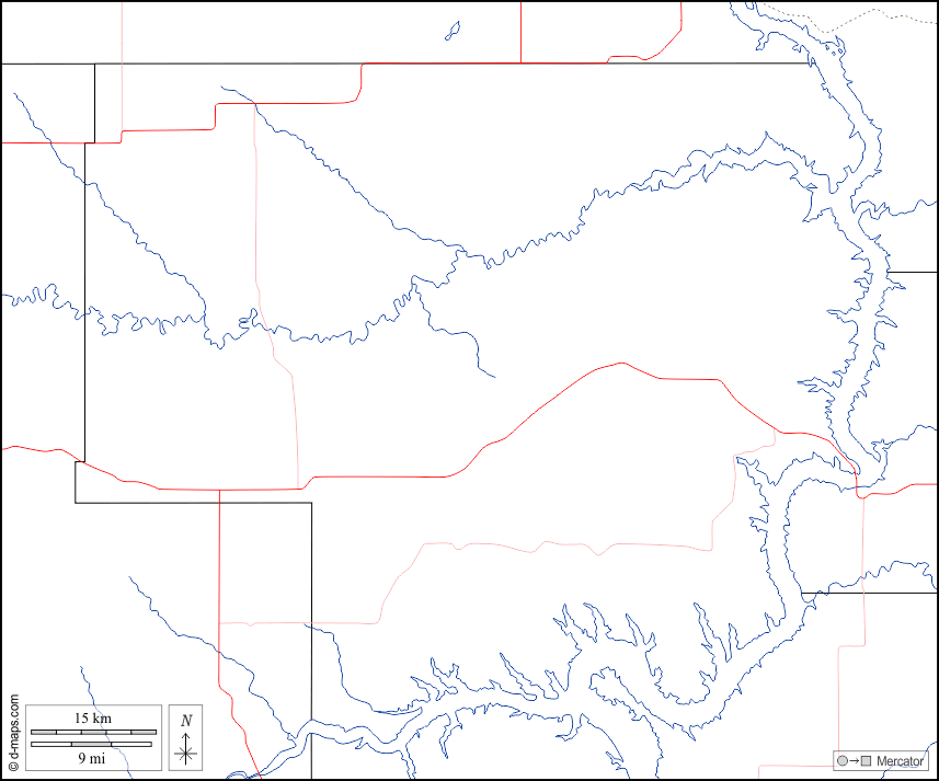 d-maps > United States of America (USA) > South Dakota > Dewey County > boundaries, hydrography, roads, white