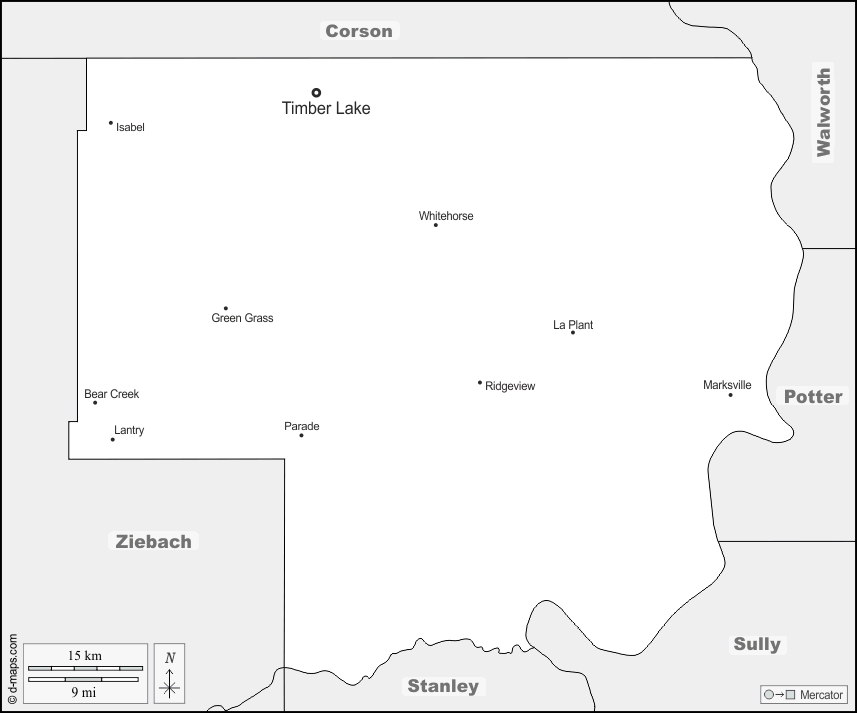 d-maps > United States of America (USA) > South Dakota > Dewey County > boundaries, main cities, names