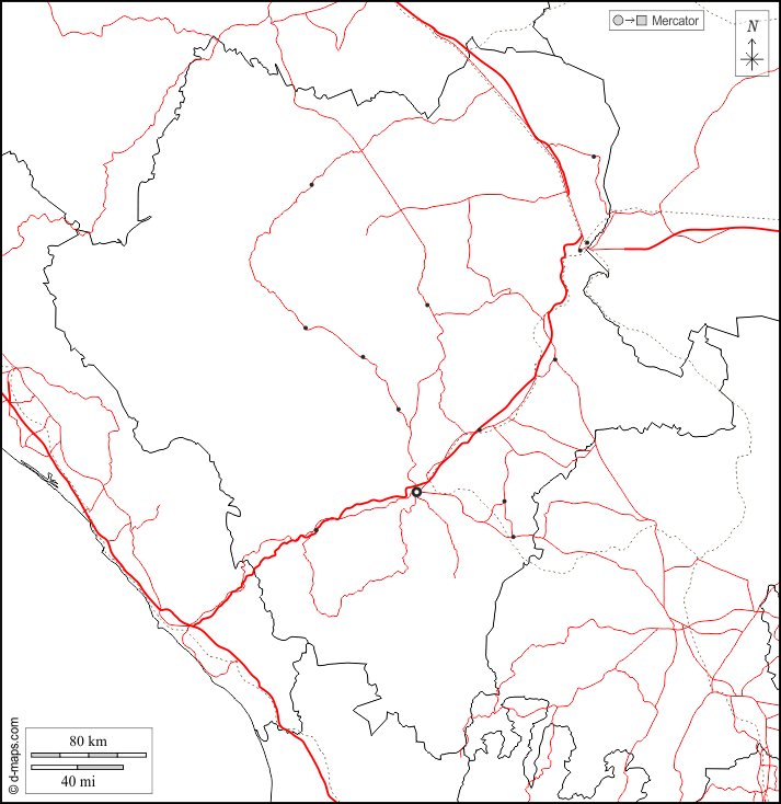 d-maps > Americas > Mexico > Durango > boundaries, main cities, roads, white